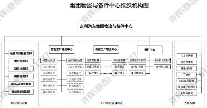 吉利汽车集团物流与备件中心成立于2019年1月,员工总数超过 6000 人,服务集团所有国内外基地的物流业务。主要负责集团物流体系的全面建设,是集团物流运营管理的归口单位。物流与备件中心主营有承担集团国内、国外销售物流的运营管理,智慧物流规划、集团物流包装器具的设计制造与交付管理,零部件物流运输项目管理,制造基地仓储物流、三方物流、厂内物流、KD包装的运营与管理,物流供应商的培训与管理,集团物流项目持续改善降本工作。