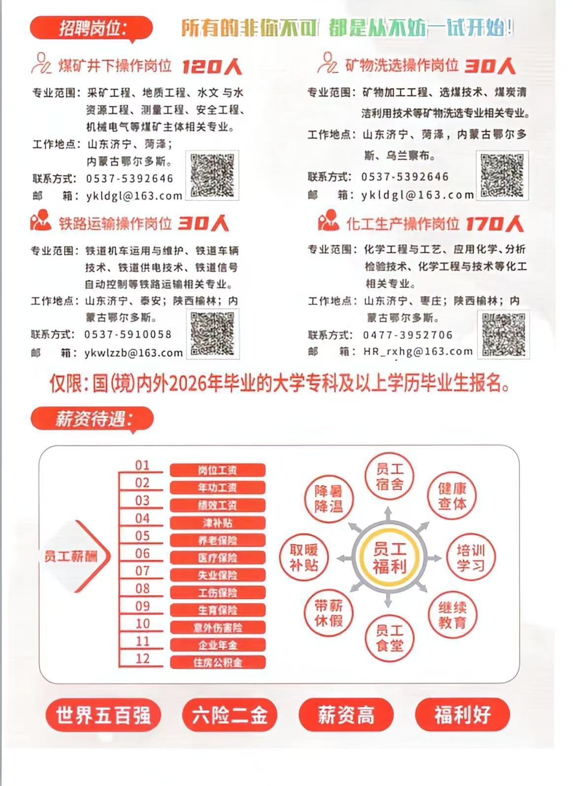 兖矿能源集团股份有限公司2026年技能操作岗位招聘简章