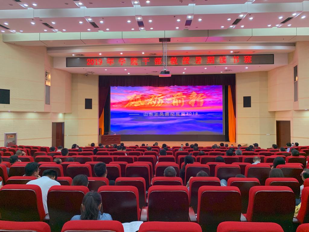 8月28日至29日,我院举办2019年干部、教授暑期读书班。学院领导班子成员、教授、正科级及以上干部全程参加会议。读书班期间,大家集体观看了《砥砺前行——山东正风肃纪反腐2018》教育片。