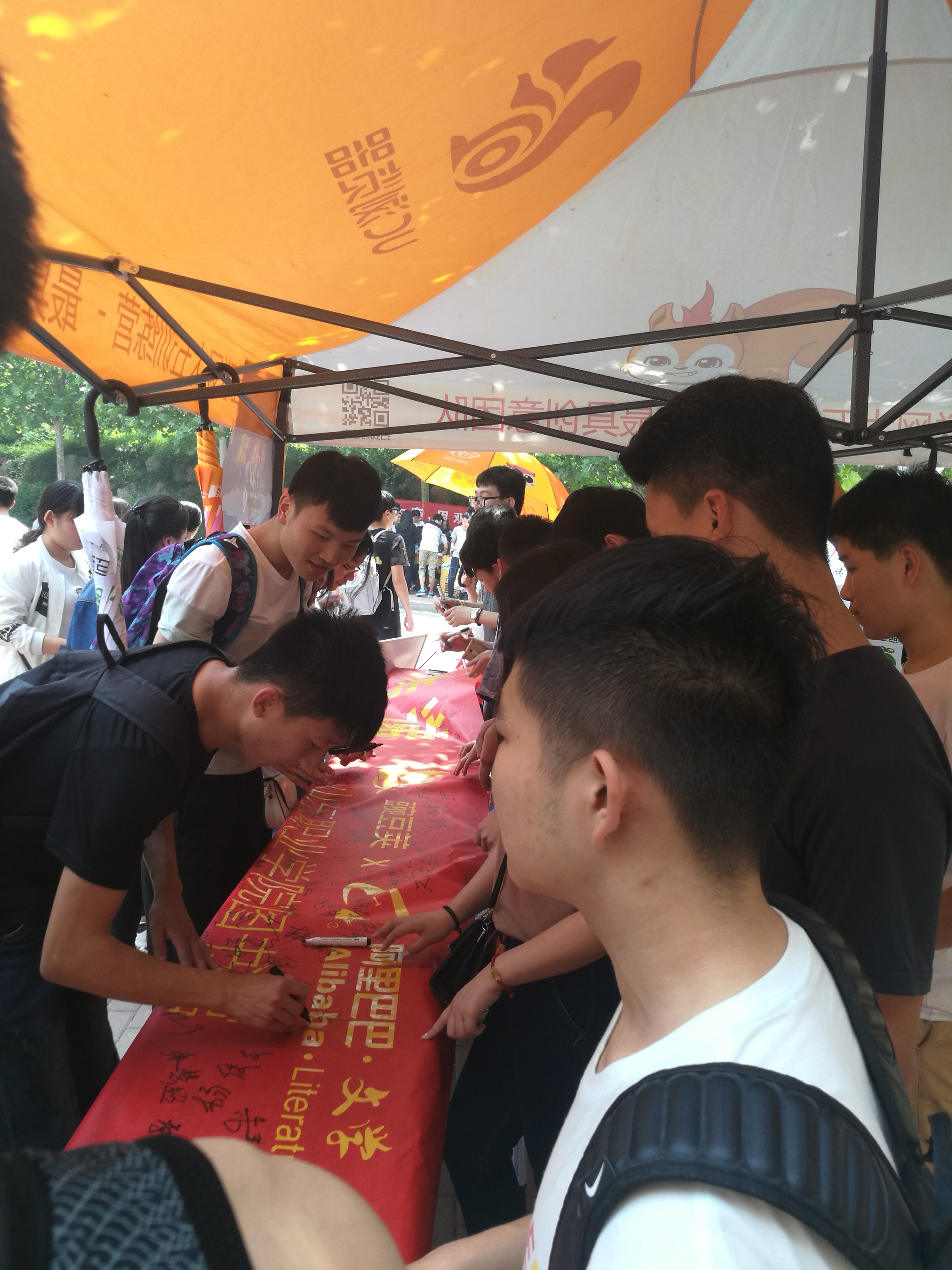 为方便广大师生雨雪天气出行,弘扬诚信精神,5月10日中午,伟德betvlctor1949源于英国图书馆联合UC浏览器于餐厅南门举办了“图书馆爱心伞诚信签名”活动。