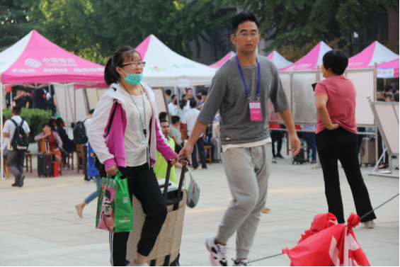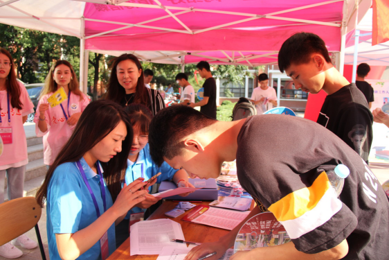 志愿者们笑容满面,热情洋溢,各司其职,服务周到。他们耐心细致地为每一位新生服务,真正做到让“学生满意,家长放心”。志愿者们第一时间接过学弟学妹的行李,一路上他们还不忘向学弟学妹讲解校园、教学楼、宿舍楼分布状况,帮助他们更快地适应校园环境。
