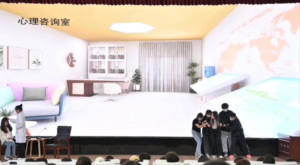 经初赛遴选,共有10组剧目进入决赛。比赛现场,各支队伍通过情景剧的方式展现身边的故事,演绎人物心理成长历程,启发同学们要正确认识自我,积极悦纳自我。其中,剧目《回家的小孩》《郁见光》脱颖而出,《回家的小孩》讲述了父母与儿女的温情故事,孩子由一开始的虚度光阴、不理解父母,到后来明白父母的良苦用心,展现出父母对儿女深沉的爱,感人至深;《郁见光》讲述了抑郁症女主如何变得敢于直面心结,展现了女性意识自我唤醒的过程,引起观众的深思和共鸣。