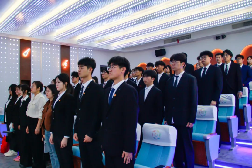 入团仪式在庄严的《义勇军进行曲》旋律中拉开序幕,全体团员肃立高唱国歌,激昂的歌声饱含青春热血与报国之志。