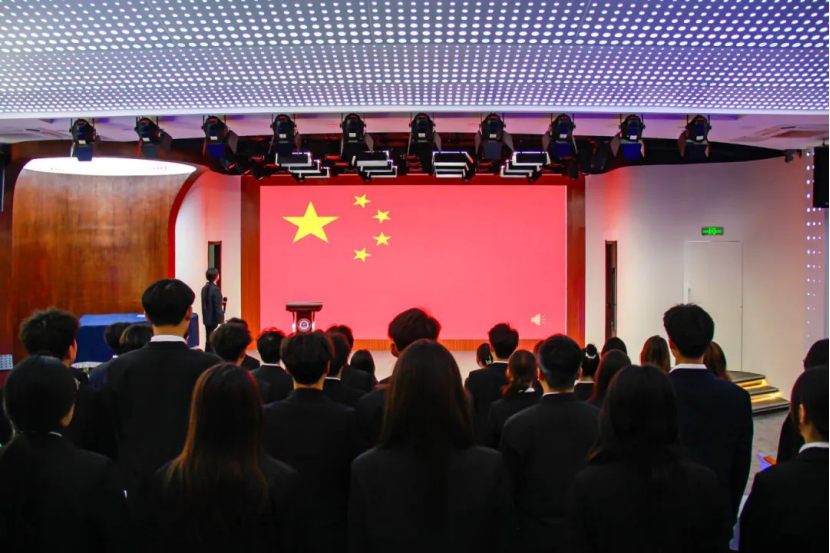 东岭书院团总支副书记林嘉炜带领全体新团员面向团旗庄严宣誓,铿锵有力的誓言响彻全场。