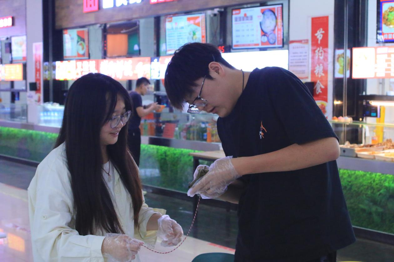 此次活动分为包粽子、投壶、猜灯谜、编五彩绳四个体验环节,共计100余名同学参与其中,现场气氛活跃,营造出浓厚的节日氛围。