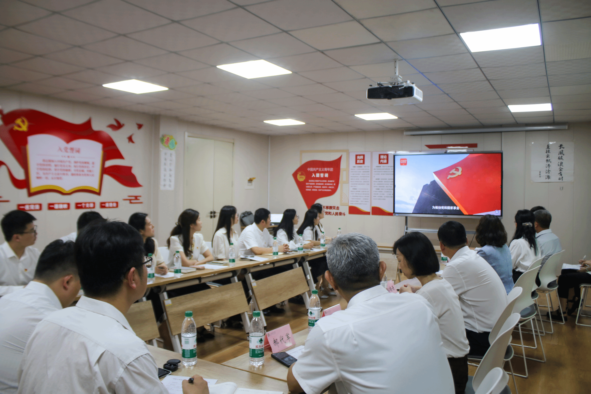 为扎实开展深入贯彻中央八项规定精神学习教育,引导党员干部进一步坚定理想信念,增强党性修养,6月30日,在七一建党节来临之际,组织统战部党支部、人事处党支部及南山书院党总支全体党员联合开展“重温入党初心,共庆政治生日”主题党日活动。党委书记赵凤文、院长郭培谦以普通党员身份参加本次主题党日活动。