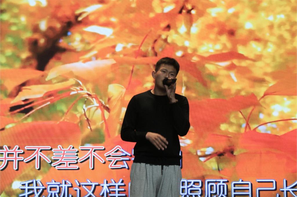 本次比赛分为歌曲独唱、两两组队PK、师生互动三个环节,在开场舞《yes,ok》的热烈氛围中拉开帷幕。在独唱环节,十位选手各展风采,有的歌舞高昂催人奋进,有的情感细腻打动人心,其中耿海鹏用自己低沉又浑厚的嗓音将《流浪记》演唱淋漓尽致,令在场观众感受到了意志坚强的少年气息,赢得阵阵喝彩;郑舒方演绎了经典歌曲《荷塘月色》,音色温柔甜美,台下观众默契地一起打着节拍,感受到浓厚的中国风韵。