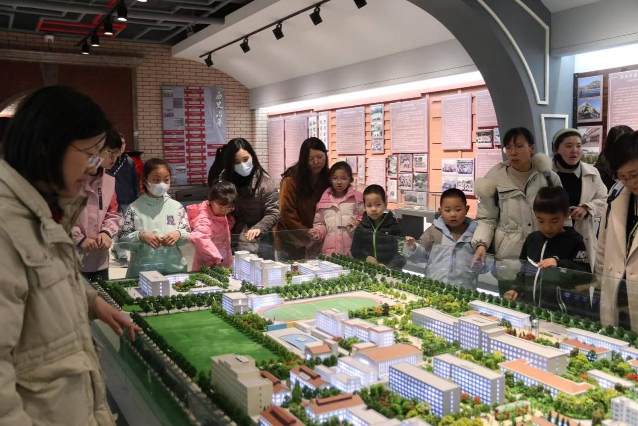 活动结尾,桐林书院志愿者带领小朋友们来到动车组检修技术实训室,通过讲解员的详细介绍,孩子们了解了动车组检修操作步骤与过程并切身体验了先进的动车组实训设备。感受到了动车组的魅力之后,又来到了图书馆行政楼九楼校史馆,通过沙盘模型观览学校的全貌,参观历史展图对学校的发展历程有了直观的感受。