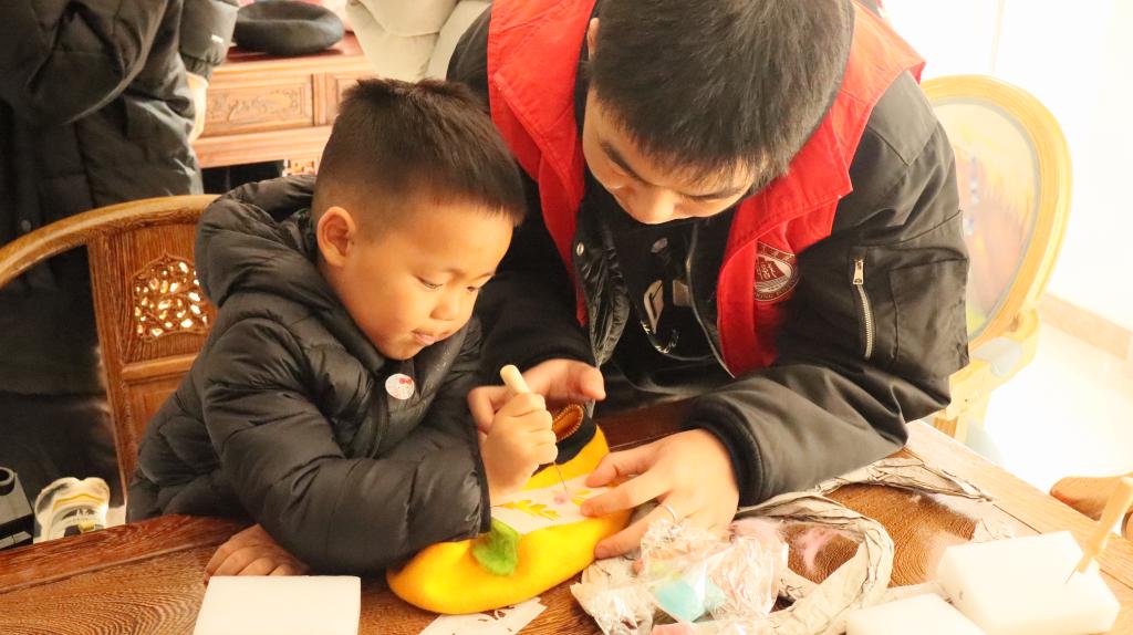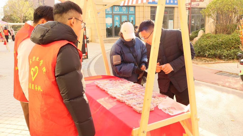 此次活动中,志愿者们耐心向居民讲解垃圾分类知识,引导居民做好垃圾分类,养成良好习惯,助力环境保护。志愿者们穿梭于各个摊位之间,详细的向社区居民讲解商品特色用途。志愿者们与居民们共同围坐在一起,向他们介绍羊毛毡贝雷帽的制作步骤与注意事项,并亲手示范教学,帮助他们制作独属于自己的温暖。