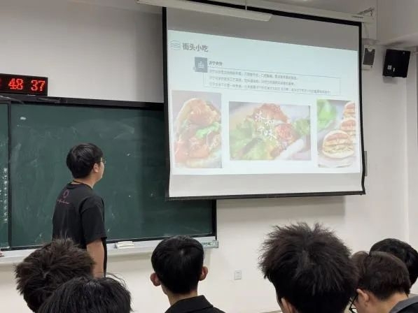 李胜胜老师与同学们一同走进济宁的文化世界,从古老厚重的历史文化遗产,到令人垂涎的特色美食,再到独具韵味的风土人情,进行了深入的分享与交流。教室里气氛热烈,同学们踊跃发言,在思想的碰撞中,加深了对济宁文化的理解。