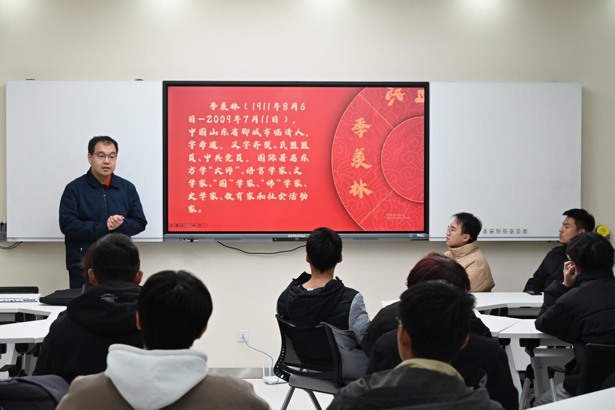 张路宽与同学们交流了家乡的传统习俗、名人名士、美食等,不仅让同学们感受到家乡的温暖,也增进了彼此的友谊。