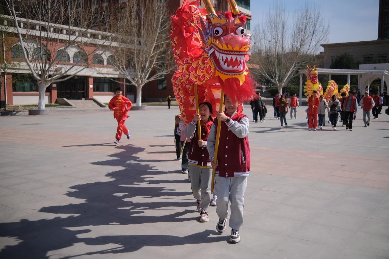 活动伊始,在图书馆行政楼西报告厅开展了“龙腾校园启新章,非遗薪火铸青春”主题讲座,讲座由桐林书院团总支书记赵呈然主持,山东省级非物质文化遗产代表性传承人侯少坤主讲,侯少坤介绍了非遗项目舞龙的起源、发展脉络与文化内涵,强调在实践中感受非遗魅力,传承非遗文化。随后,临清社火在喷泉广场开展舞龙表演并耐心教学舞龙的动作要领,小朋友们纷纷拿起工具,亲自体验传统技艺的深厚底蕴。