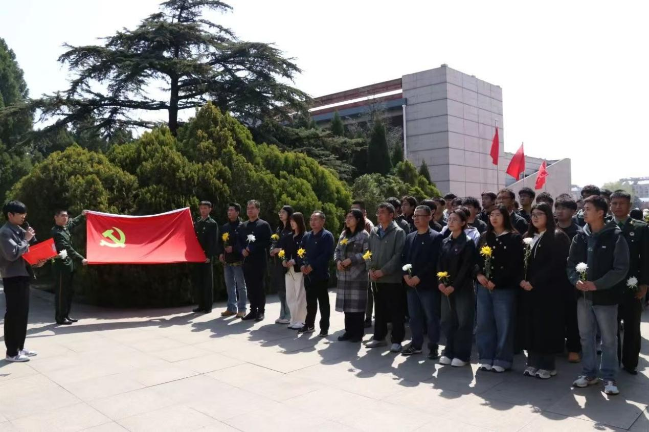 参观结束后,师生们来到革命烈士纪念塔前,举行了庄重的祭扫仪式。师生集体宣誓,表达了继承英雄业绩、立志报效祖国的决心。在烈士纪念碑前,敬献鲜花并深深鞠躬、默哀,表达对先烈们的无限哀思与崇高敬意。