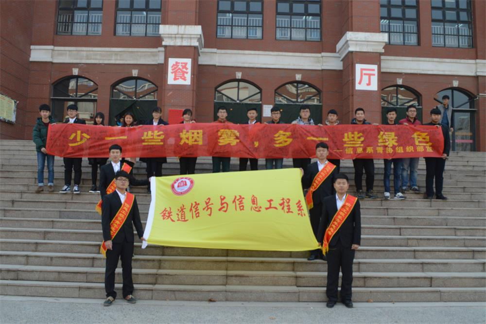 为积极响应学院号召,创建无烟校园,12月8日,铁道信号与信息工程系青年志愿者协会举办了“禁烟行动,师生同行”主题签名活动。活动中,同学们纷纷在禁烟标语横幅上签名承诺:禁烟从我做起。通过活动,进一步呼吁师生关爱生命健康,远离烟草,创建无烟校园。
