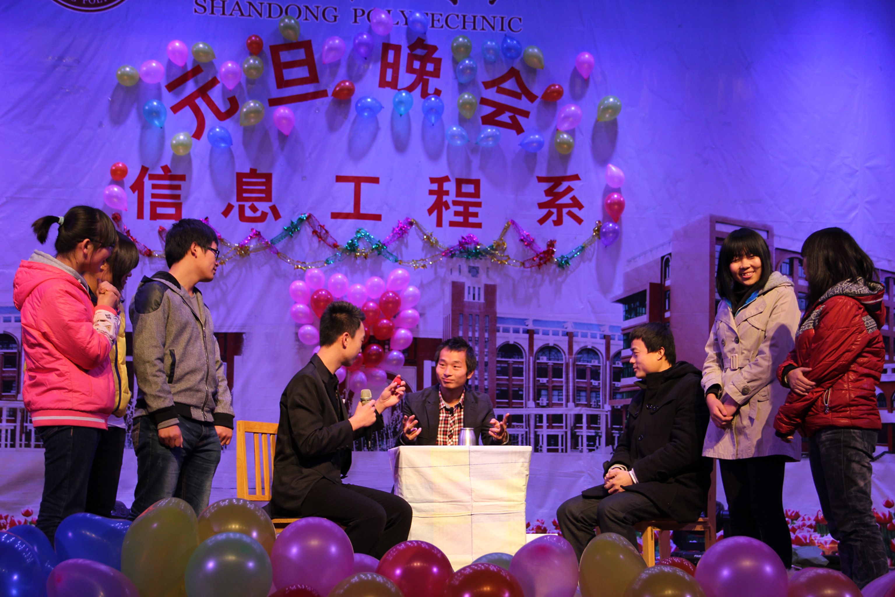 12月30日晚,信息工程系2013年元旦晚会在南益馆隆重举行。学院学生处处长郭忠相老师、学院团委书记王伟老师、学院团委办公室主任齐涛老师、信息工程系党总支书记杨文虎老师、信息系学工办主任钮晓悦老师、信息系团总支书记谢凯老师及信息系各级辅导员、各班班主任老师莅临了本次晚会;本次晚会面向全院老师及学子。