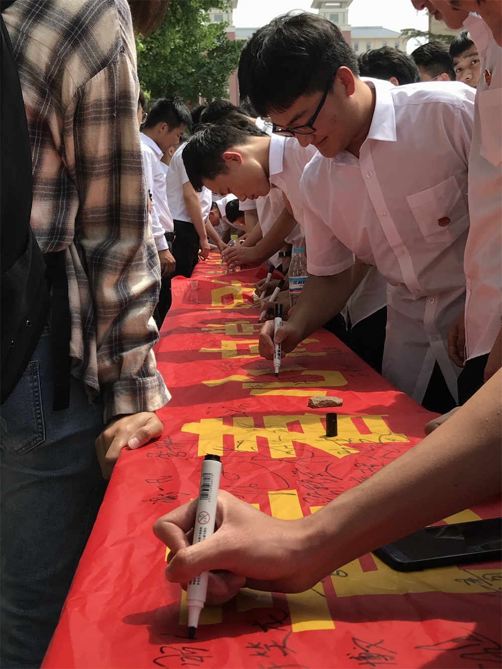 活动伊始,信号1831团支部组织召开了“新时代、新动能、新青年”主题座谈会。会上,主持人向郭书记提问对“新时代、新动能、新青年”主题的理解,郭书记表示:新时代是党的十八大以后在习近平总书记的领导下5年以来取得的历史性成就和历史性变革的方位上所做出的科学判断。座谈会最后,郭书记向青年学生提出了新的期望。随后,领导老师来到信号1835团支部参观了“青春奋进”手工艺品展,并参加其他团支部的党团知识竞赛、诗歌朗诵等各项活动。活动最后,参加本次团日活动的团员在凯旋门前进行“传承五四精神,展现青春风采”宣誓。宣誓结束后,参加活动的人员进行了签字仪式。