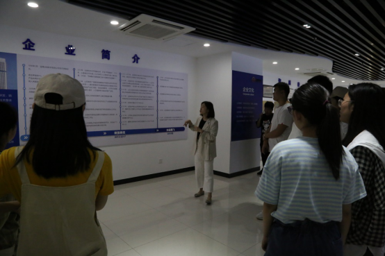 首先,师生们乘车来到浪潮集团有限公司,由企业负责人带领学生实地参观,介绍企业背景和产品。参观的过程中,学生们对于浪潮公司的产业产生了浓厚的兴趣并深入与讲解员探讨,大大提高了学生们对行业发展及产品的认知。随后,师生们来到山东众阳科技集团有限公司,在公司负责人的带领下,学生们对办公区进行了参观,井井有序的现场、分工合作的团队和温馨的公司文化,给同学们留下了深刻印象。