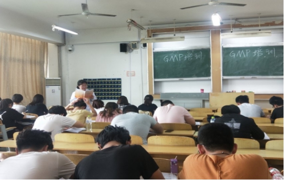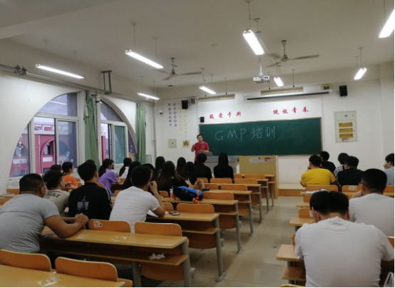 GMP,全称为“GOOD MANUFACTURING PRACTICES”,中文含义是“生产质量管理规范”或“良好作业规范”等,是一套适用于制药、食品等行业的强制性标准,提供药品生产和质量管理基本准则。在培训过程中,老师从实训车间的操作要求、药品生产质量管理规范、厂房设施、物料管理、文件管理、生产管理以及自检部分等不同方面出发,为同学们做了详细讲解,并叮嘱同学们从细节着眼,养成良好习惯,穿好实验服,严格按照正确流程操作。