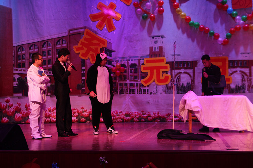 本次晚会以“激情元旦、放飞梦想”为主题,节目精彩纷呈。晚会以一曲动魄人心的《威风锣鼓》拉开了帷幕。舞蹈《丰收的葡萄园》以曼妙优雅、婉约优美的舞姿吸引了在场观众的眼球;一首《乌苏里船歌》唱出了赫哲族人欢快,甜美的幸福生活,赢得了全场的阵阵掌声;《街舞表演》激扬着青春的风采,让人仿佛走进了时代的动感地带,世界在观众的眼前舒展开来;极具创意的小品《一念天堂》以风趣幽默的动作、诙谐调侃的语言令在场观众捧腹,将全场火爆的气氛瞬间点燃。而之后的歌朗诵《青春赞歌》、礼仪《礼暖冬夜》更是将现场气氛推上了高潮,叫好声和掌声不绝于耳。表演期间的观众互动环节萝卜蹲、抢凳子等趣味小比赛令场上欢声一片。最后,晚会在两系学生干部一首合唱声中圆满落幕。