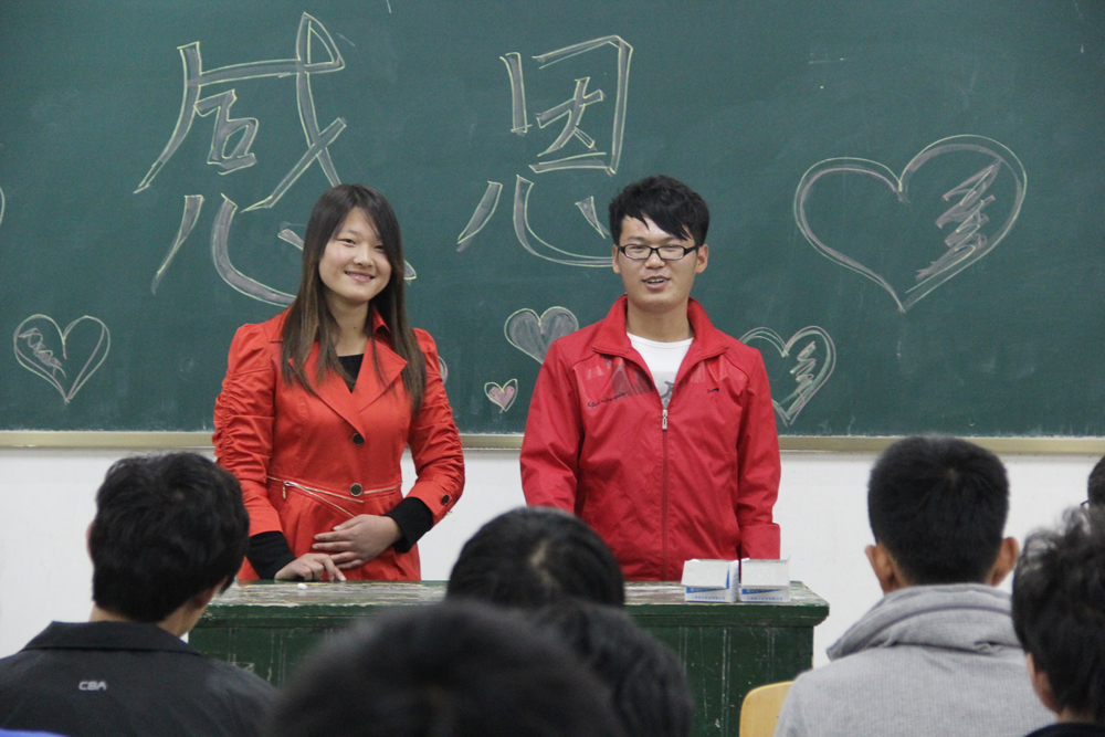在谈到自己对感恩的理解时,机电1235班的郑岩说到,著名的数学家华罗庚曾经讲过,人家帮我,永志不忘;我帮人家,莫记心上。感恩就是对别人所给的帮助表示感谢,是人生的一条基本准则,也是人生质量的体现。