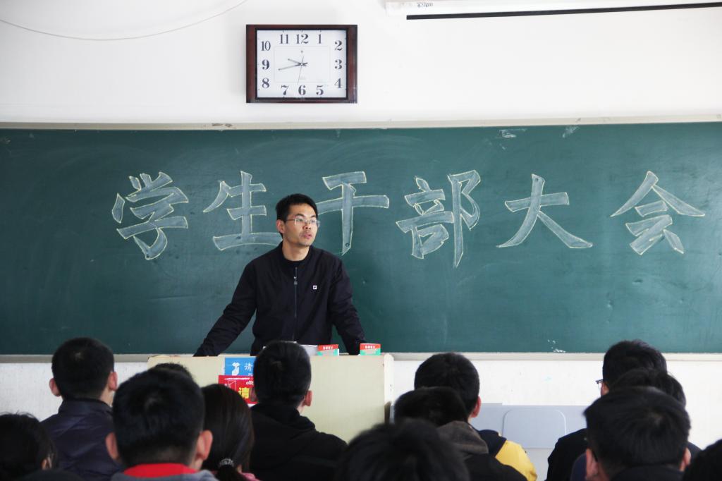 随后殷老师又给大家讲解学生干部日常工作方法,他提到学生干部不仅要有所牺牲,还要有带头干、亲自干的工作精神。在老师与同学之间充当好桥梁纽带的作用,培养自己的应变能力,将同学发生的问题及时反馈给老师。最后,他希望学生干部要端正思想态度,有责任感、服务和奉献精神,平衡好学习和工作的关系,能够正视老师的批评,勇于改正。会后,全体学生干部进行了拍照留念。