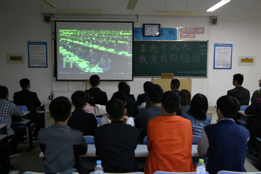 10月18日,铁道车辆与机械工程系组织全体学生观看十九大开幕盛况,学习习近平总书记代表第十八届中央委员会向大会所作的报告。党的十九大是在全面建成小康社会决胜阶段、中国特色社会主义发展关键时期召开的一次十分重要的大会。师生们一致认表示,将永远听党话跟党走,踏实肯干,一丝不苟的完成本职工作,以实际行动为实现我们的中国梦贡献力量。