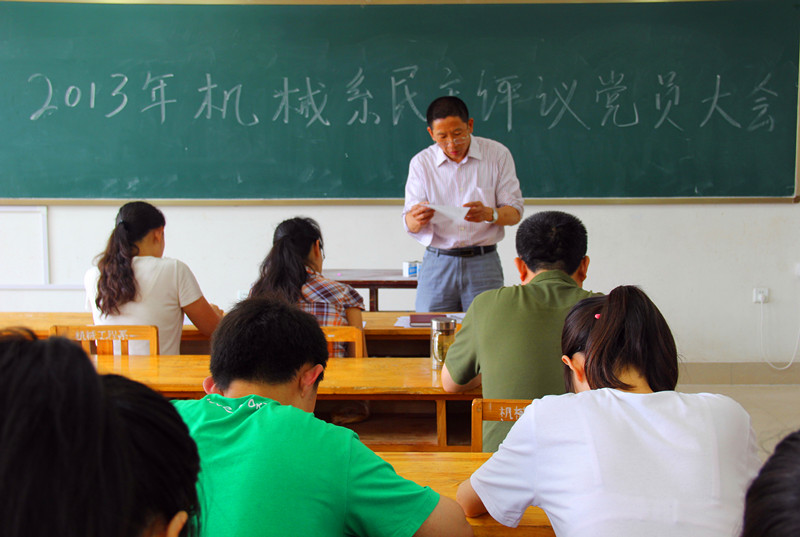为了更好的完成打造高素质、高水平的党员队伍的艰巨任务,机械工程系于7月4日在9306召开“2013年机械系民主评议党员大会”。参加本次活动的有,机械工程系学生党支部书记杨廷富、学生党支部成员刘娟、季开瑞等12人,以及机械系所有学生党员。