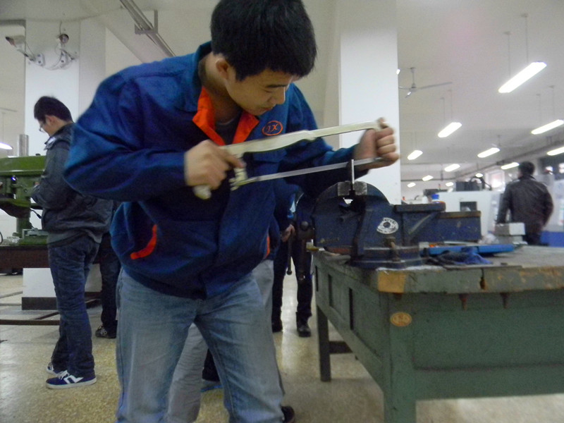 通过预赛和复赛的激烈竞争选拔,部分同学凭借自己出色的钳工技能脱颖而出,成功闯入了决赛。比赛中,同学们对图纸进行了细致的分析和解读,对零件进行了锯、挫、削、磨、打孔等加工工艺,在操作的工程中,他们聚精会神,操作熟练,姿势正确,搓削力度把握得当,加工后的零件精度较好,锯搓技术都达到了较高的要求。最后,所有参赛人员将都在规定的时间内将工件加工完成,专业老师对这些工件进行了评分、评比。