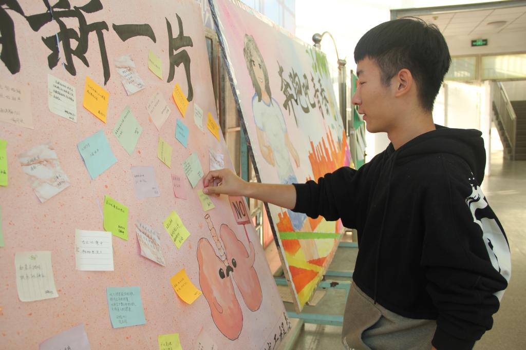 29日下午,该系开展粘贴禁烟小标语活动,工作人员精心布置了活动现场,活动中,同学们积极参与,纷纷在便利贴上写下自己的禁烟标语粘贴在展板上,他们为禁烟活动付出的一份真心给我们的心灵带来了丝丝凉爽。
