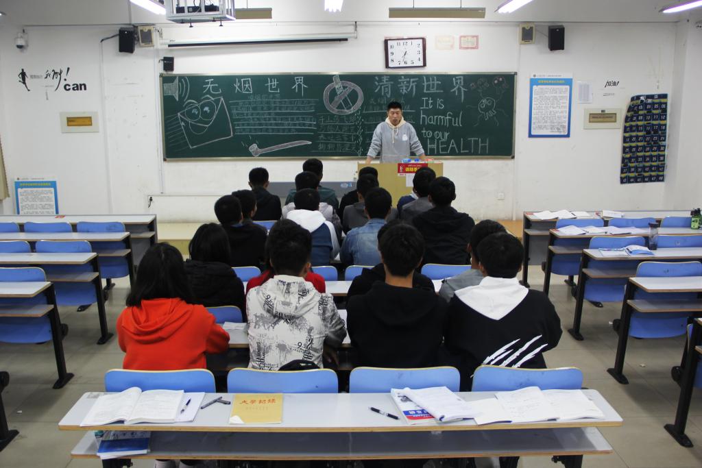 珍爱生命、远离烟草,共建无烟校园。10月27日晚,各班开展禁烟主题班会,在班会上,各班班长以直观的黑板报和PPT的形式告知同学们烟草中的有毒物质及其危害和二手烟有何危害,随后带领同学们详尽地剖析了吸烟的危害、公共场所禁烟的益处、戒烟的方法等,同学们受益匪浅。