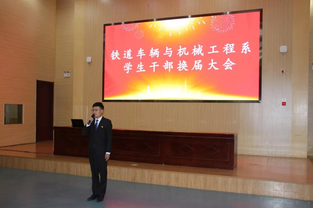 为加强学生干部队伍建设,完善系部学生组织机构,促进下一步学生工作有序开展,10月15日,铁道车辆与机械工程系于图书馆东报告厅举办学生干部换届大会。学工办主任殷岩锋,团总支书记刘娟,辅导员老师王成琳、李稚出席本次会议。