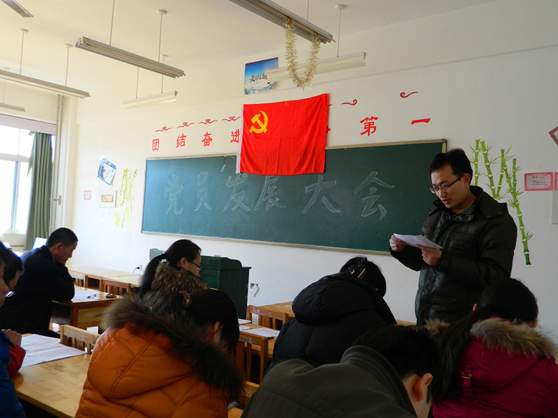 大会在庄严地国歌声中开始,之后每位准备发展对象宣读了各自的入党志愿书,向党组织汇报了自己的思想、学习等情况。入党介绍人对发展对象给予肯定,并且采用现场举手表决的方式全票通过了郭玉燕等11位同学为预备党员。最后,党支部书记杨廷富同志代表党支部对所有发展对象在生活、学习等各方面做出了要求,要求学生党员时时刻刻要做到先锋模范带头作用,并对新发展的预备党员同志表示祝贺。大会在庄严的国际歌中圆满结束。