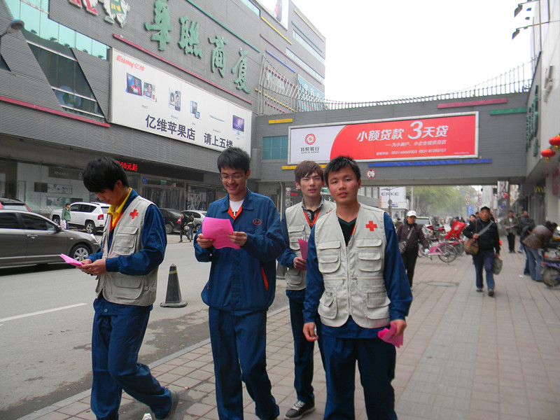 本次活动中,同学们表现出了机械系严谨、认真的工作态度,进入街道各个店铺,向商家和店内消费者进行了详细的介绍和宣传,并号召大家加入到我们捐献活动中来。为了在短暂的时间内达到最好的宣传效果,同学们在匆匆解决了午饭问题以后马上投入到了宣传工作中去,得到了红十字会工作人员的一致好评。