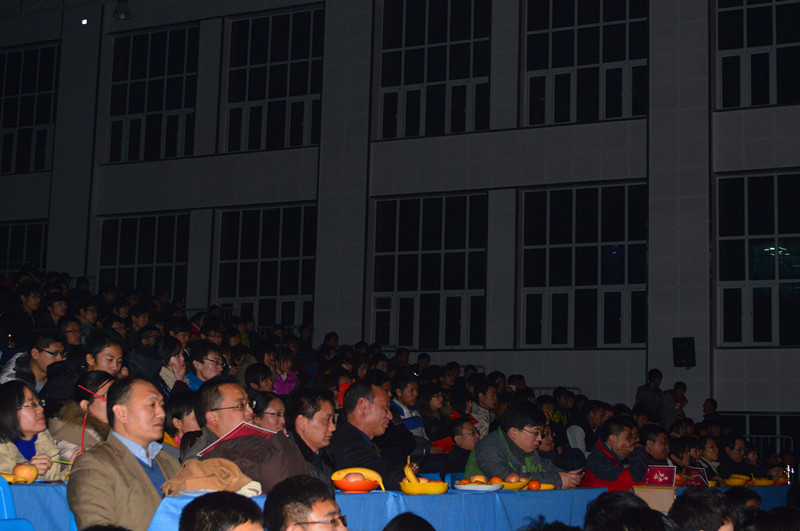 本场晚会在充满青春活力的歌舞《青苹果乐园》暖场秀中正式开始。机械工程系党总支书记史晶为大家做了新年致辞。史书记在致辞中要求大家,晚会结束后,为父母打个电话,感谢他们对我们这么多年的养育。史书记致辞结束后,一支优雅淡静的《临安初雨》为同学们舞出了春的篇章。之后,一段相声《我的儿子》以其内容的教育性和幽默性获得了全场的掌声。小品《机械滩》表演者精彩的反串和搞笑的情节将整个晚会推向高潮。史晶书记受全场气氛的感染,与来自机制1232的董继生一起登台为大家献上了一曲《老男孩》,史书记用自己的歌声拉近了与同学的距离,实现了与同学们心与心的沟通,引得台下的同学们纷纷拍手叫好。郭忠相处长也同样登台为大家献上了一曲感动全场观众的《儿行千里》,郭处长动情的歌声使台下许多同学低头深思,思念自己家中的父母,思考郭处长唱歌之前对大家寄予的希望,希望大家能够做到史书记的要求,晚会后记得给父母打一个电话,道一声感恩。最后,本次晚会在所有老师、演员及晚会工作人员合唱的《难忘今宵》中完美落幕。
