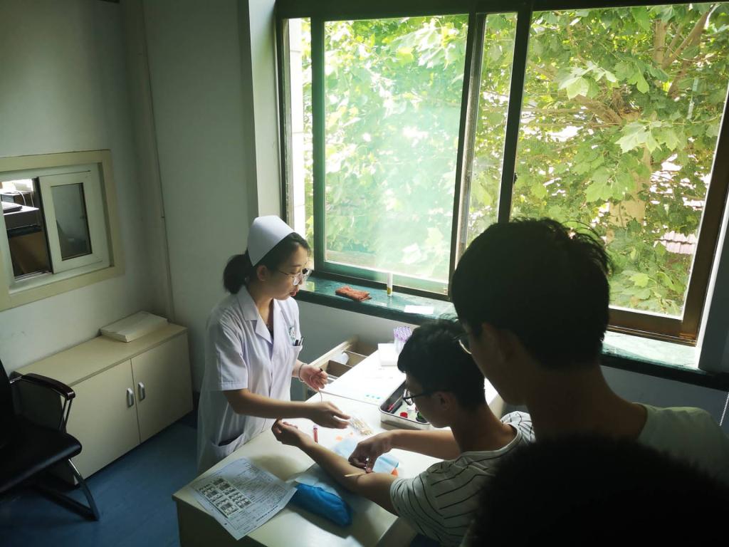 经过填写个人信息单、血压测量、化验血型等检测,我系十二名血小板捐献者依次躺上采血椅,伸出自己的臂膀,献出青春的热血,用“红色”书写爱心。在医生的指导下,志愿者们给献血者送去糖水,细心提醒他们在献血过程中及献血后需要注意的事项,给他们带去温暖细致的关怀。炎炎赤日丝毫没有阻挡住同学们奉献爱心的热情,捐献血小板的王正亚同学表示:“虽然是第一次捐献血小板,但是一点都没有感觉到紧张,内心更多的是激动。希望通过自己的这次献血行动,可以给更多的病患者们提供救助。”献血过后,每一位同学脸上都洋溢着开心的笑容,在活动结束后同学们一起合影留念。