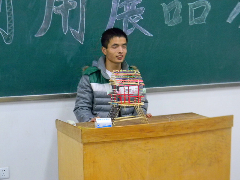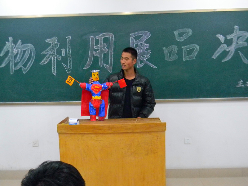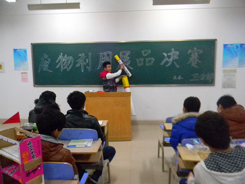 为增强同学们的节约意识,发挥同学们的想象力、创造力,机械工程系于12月1日晚举办了宿舍废物利用大赛。