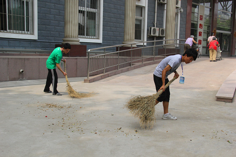 青协志愿者们为了能够抽出更多的时间在福利院进行义务清扫等活动,一大早大家就集合来到了济南社会福利院。大家为福利院带去了食用油、大米等生活用品以及医药箱等物品,为社会福利院送去了爱心。放下物品后大家马上在青协会长的组织下立刻投入到了对福利院的清扫活动中,在大家两个小时的努力后,福利院重新焕发了光彩。