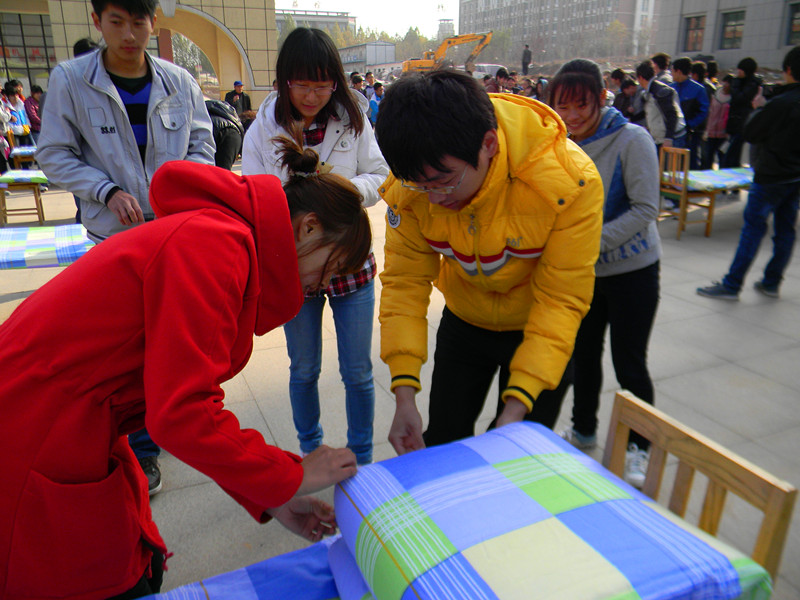 11月24日上午,机械工程系叠军被大赛在九号教学楼门前举行,2012级新生参加了本次比赛。