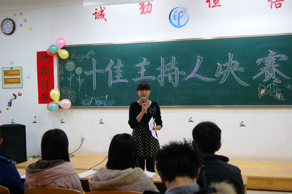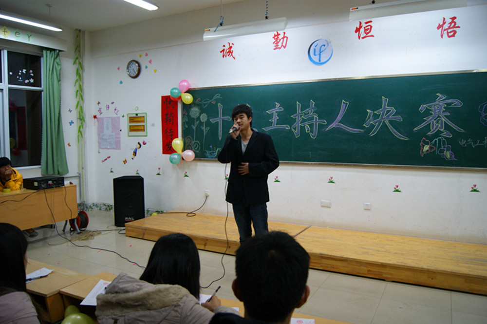 12月11日下午,电气工程系十佳主持人决赛在A504室举行。文艺部各部长和上届“十佳主持人”担任此次大赛的评委。教室座无虚席,掌声阵阵,欢乐、青春的浓浓气息洋溢着整个比赛现场。