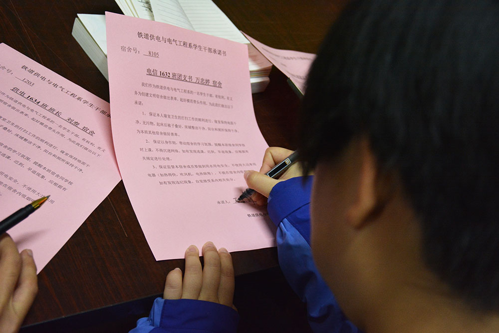 铁道供电与电气工程系举办“建设文明宿舍”承诺签字仪式