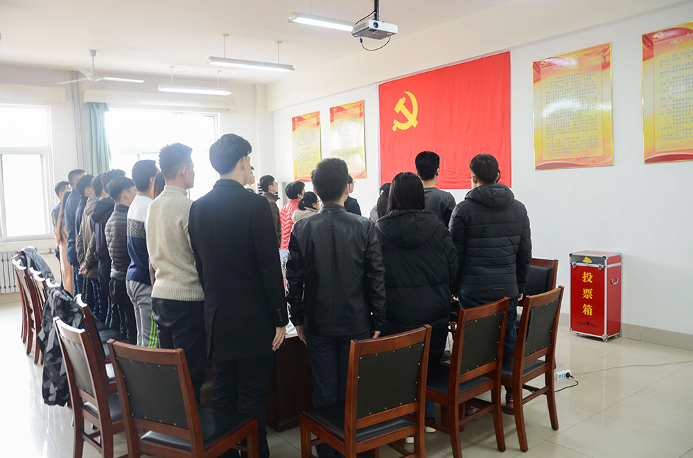 会议在庄严的《国际歌》中拉开帷幕,严格按照党员发展程序进行。17位发展对象依次读入党志愿书,表明加入党组织的强烈愿望和坚定不移跟党走为共产主义事业奋斗终身的决心。入党介绍人就17位发展对象的培养考察情况作了介绍说明。与会正式党员进行民主评议,充分发表意见,肯定成绩,提出不足,指明方向。经与会正式党员投票表决,同意吸收曹中源等17位同志为中共预备党员。表决通过的新一批中共预备党员们纷纷表态,会更加严格要求自己,在预备期内不断改进自身缺点,求真务实,为转为正式党员打下坚实基础。