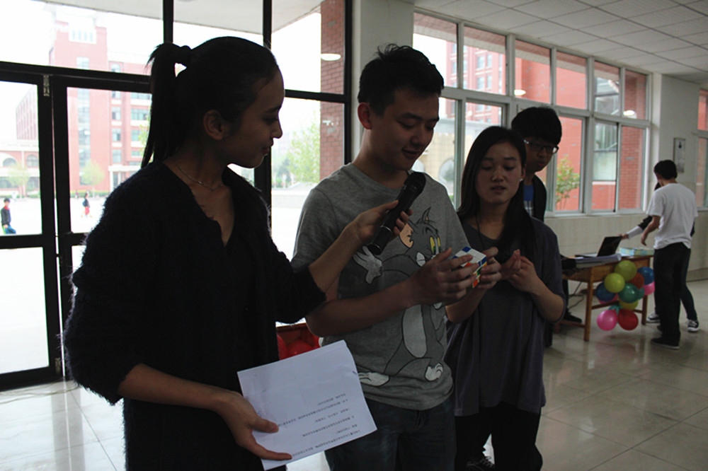 第一届魔方比赛顺应潮流,同时也为广大魔方爱好者提供一个交流的平台,为魔方高手们搭建了一个表演舞台。学生会主席穆青、社团部部长吴琪和魔方协会会长张耀宸也来到了现场为选手鼓劲。此次魔方比赛于4月10日下午开赛,首先由DOD街舞协会来表演开场舞,随后主持人宋永康、李哲宣布魔方比赛开场。本次比赛由个人赛、团队赛、疯狂赛组成,经过初赛复赛决赛激烈的比拼,陈同鑫同学技压群雄,脱颖而出,以45秒44的复原三阶魔方速度夺得了比赛冠军。比赛最后,穆青也即兴表演了快速拼魔方,并以45秒56的好成绩劲爆全场。 此次的比赛在工作人员的认真负责与有序分工配合以及参赛者的激情高涨下圆满举行,在参赛者双手变幻莫测地转动下,魔方已经不再是一种玩具,而是作为一项训练手眼协调,提高记忆力的运动深入人心。魔方也日益活跃在同学们的业余生活中丰富开展起来。