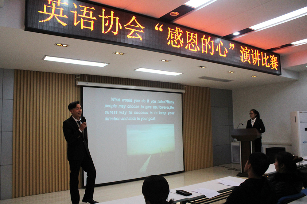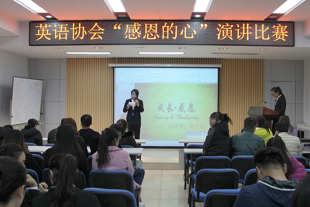 为提高同学们的英语口语表达水平,激发大家学英语的热情,11月28日,铁道运输与财经管理系举办了“感恩之心”英语演讲比赛。有着国外求学经历的辅导员老师张蕾、会计教研室老师王星月出席活动。