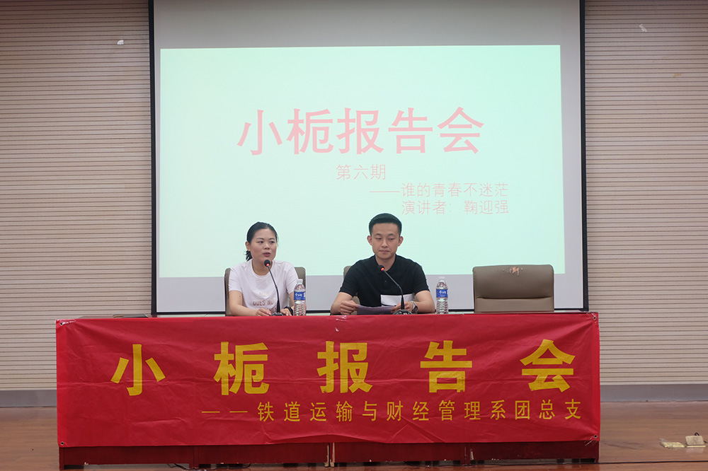 聚焦5月13日,铁道运输与财经管理系举办第六期小栀报告会--谁的青春不迷茫,本次报告会由16级团总支副书记鞠迎强作为主讲人,系团总支书记张锦,辅导员丁帅、徐亚男,18级交管班主任王昊老师出席活动。
