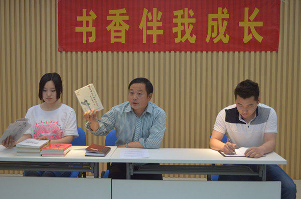 随后,与会同学一起学习了高淑珍老师的文章《让我们一起来“悦”读》。文章说,其实读书并不是苦差事,尤其对大学生来说,高考已过,提高个人素质显得格外重要。读书不是苦差事,我们可以从求真中享受读书的乐趣;我们可以从求善中享受读书的乐趣;我们可以从求美中享受读书的乐趣。只要豁达对待,读书其实是一件很愉悦的事。