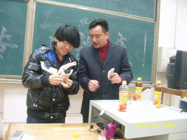 焦海行长给同学们讲述了他的个人经历,让同学们倍感亲切。同时告诉我们在大学三年中至少要学到以下几点:1、要有严谨的学习工作态度;2、要多参加实践活动丰富自己的知识,增强分析能力。这两点对同学们以后的就业是有帮助的。并且焦海行长向同学们展示了作为会计的基本功——点钞,看到焦海行长娴熟的技巧,同学们跃跃欲试,为了让同学们更深刻地体会会计工作,焦海行长传授了点钞基本技法。最后为了活跃场上的气氛,焦海行长还请了两名同学到讲台上手持点钞专用券进行比赛,这让我们了解到看似简单的点钞是离不开勤奋的练习和不懈的坚持。