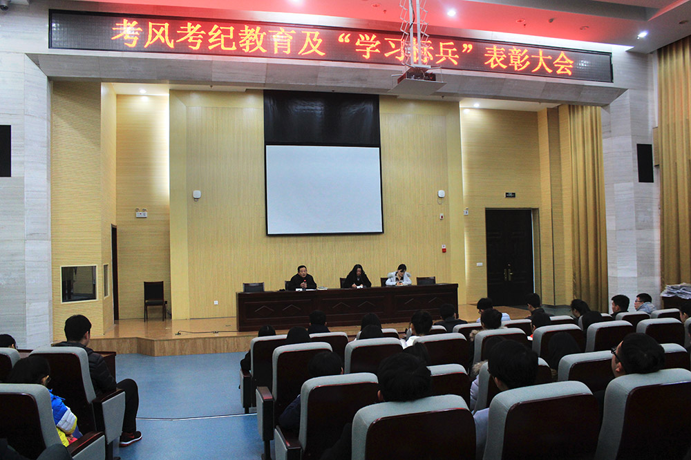 为严肃期末考试考风考纪,12月22日,铁道运输与财经管理系召开考风考纪教育及学习标兵表彰大会。系副主任兰亦青、学工办主任栾金志出席大会。会上,兰亦青希望同学们要高度重视考风考纪,认真备考,不可心存侥幸心理。栾金志宣读了“学习标兵”“自学之星”的表彰名单并颁发奖品,学生代表宣读了《诚信考试承诺书》。