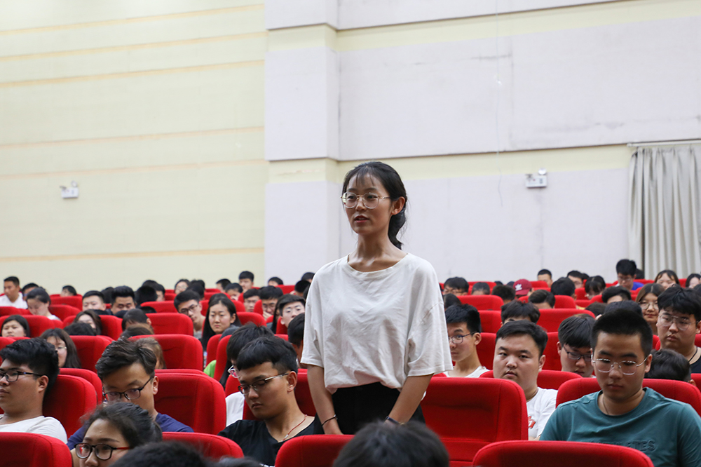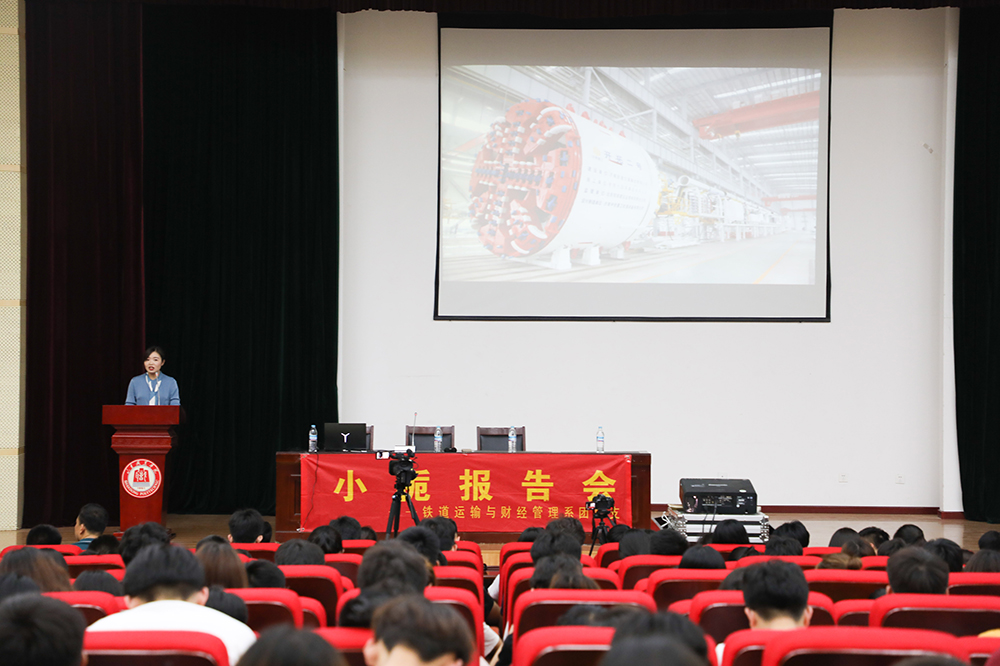 接着,任巍晓进行报告。她感慨怀念了美好幸福的大学生活,并对老师表达了感谢,同时表露出现在作为一名地铁人的初心,为她所在的集团公司感到骄傲和自豪。随后,她为同学们讲解了刚开始实习的困惑、外出他省地铁公司学习的艰苦、自己工作三年的经历。面对就业充满困惑的学弟学妹,她提出了不忘初心、脚踏实地、锤炼品格、勇于奉献四点建议,也对学弟学妹们发出了到济南地铁工作的邀请。