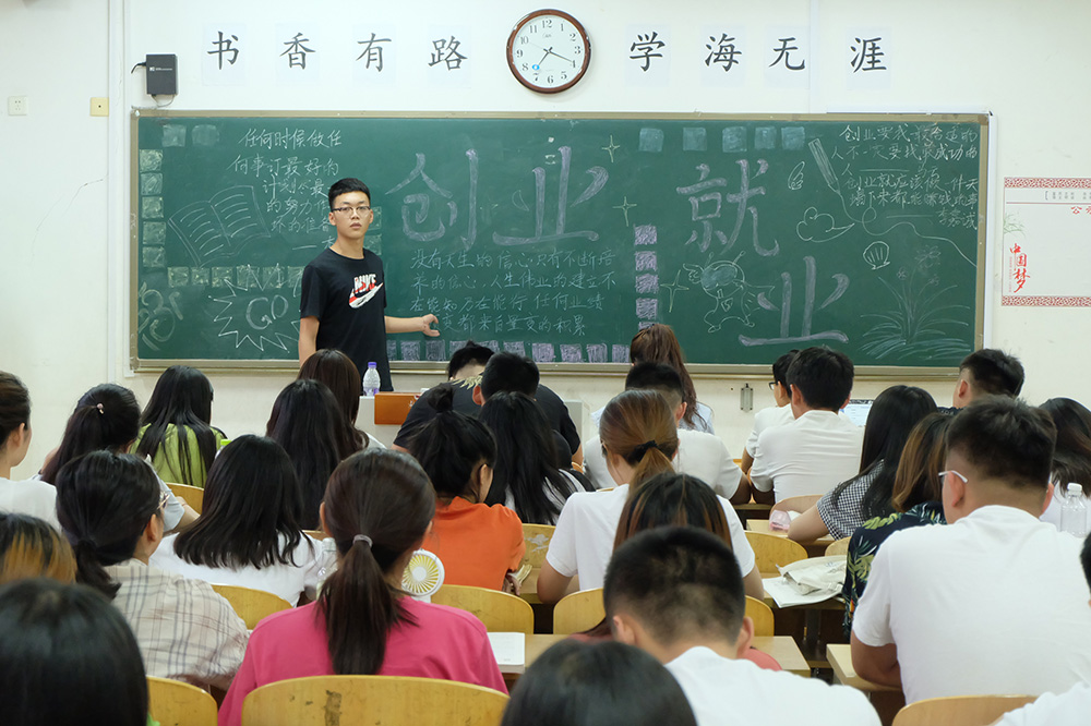 培养大学生就业创业能力是缓解不断扩大的社会就业压力的需要,各班级通过绘制黑板报、制作ppt等方式,向同学们展示了有关就业创业的例子,通过列举相关成功人士案例,让同学们深入了解相关知识。班会上,交管1833班以“创业吧兄弟”为主题,提醒同学们重视大学生创新创业,并从多个角度列举当代大学生在创业中普遍面临的问题,呼吁同学们积极参加有关创新创业的活动;会计1831班以“大众创业,万众创新”为主题,以大学生怎样创新创业为核心内容,全班进行深入讨论;物流1831班的同学们在班会上表现活跃,讲述了各自对于就业创业的看法和感想,让同学们更加深刻的理解了就业创业的含义。