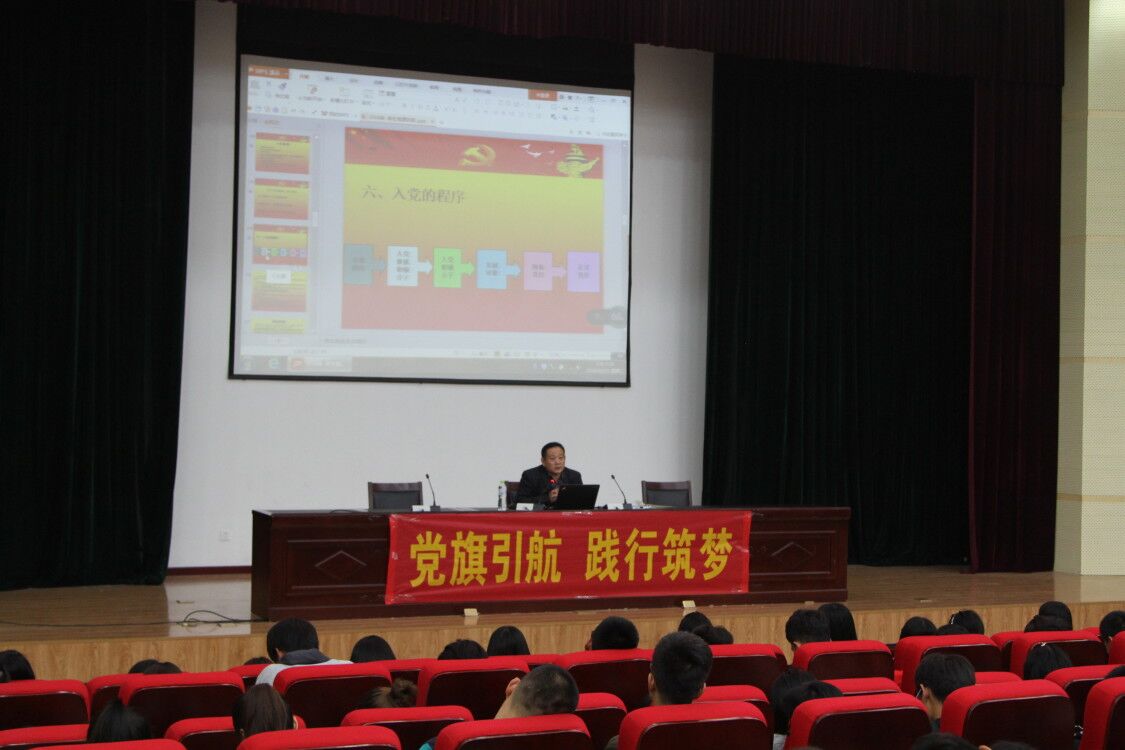 栾书记首先介绍了中国共产党的党旗、党徽、性质、指导思想、最终目标和现阶段任务以及发展大学生入党的意义等知识,分析了大学生在如何认识党的问题上存在的误区和应有的正确态度,随后详细介绍了入党的程序、学院党团组织有关的推优入党方案和标准,介绍了《入党志愿书》的写作要求,并向同学们提出了要不断加强政治理论学习,提高思想道德修养,树立正确入党动机,脚踏实地努力实践,团结协作,互相帮助,经得起磨练,热心为同学服务,发挥模范带头作用的要求。讲座上,栾书记还就习近平总书记在纪念红军长征胜利80周年大会上的讲话精神作了讲授,号召大家要大力弘扬伟大长征精神,走好今天的长征路。通过本次讲座,新生们对中国共产党有了更深刻的认识,激发了对党的热情以及用实际行动争取早日加入党组织的决心。